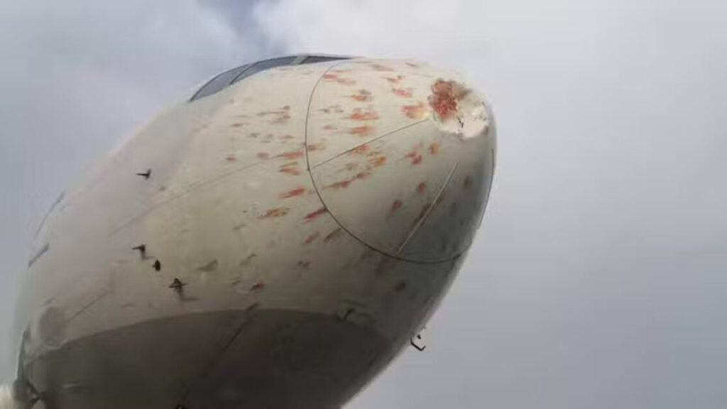The Saudia 777 bird strike incident occurred during a routine flight when the aircraft encountered multiple birds during approach. The impact was sudden, causing visible damage to one of the aircraft’s engines and several parts of the nose section.